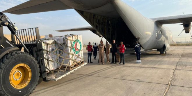 من جهتها أكدت .. وزارة الدفاع، اليوم الثلاثاء، عن ارسال وجبة جديدة من المساعدات الغذائية والاغاثية الى الشعب الفلسطيني عن طريق طائرات القوة الجوية العراقية.