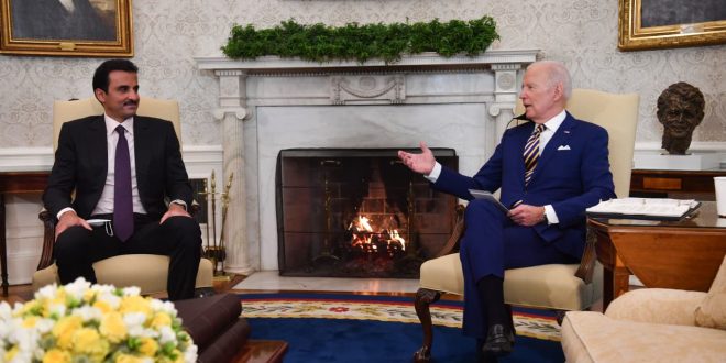 بحث أمير قطر الشيخ تميم بن حمد، الثلاثاء، مع الرئيس الأمريكي جو بايدن آخر تطورات الأوضاع في غ-ز-ة والأراضي الفلسطينية، و”جهود الوساطة المشتركة للتهدئة وصولا إلى وقف دائم لإطلاق النار”.