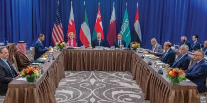 ووفقا للبيان، الذي نشر على موقع مجلس التعاون، عقد وزراء خارجية دول المجلس ووزير الخارجية الأمريكي أنتوني بلينكن، وجاسم محمد البديوي، الأمين العام لمجلس التعاون، اجتماعهم الوزاري المشترك في مدينة نيويورك، الاثنين، لـ”الاحتفال بالأهمية الاستراتيجية للعلاقات التاريخية بين الجانبين”، وأكد الوزراء في هذا الاجتماع “التزامهم المشترك بالبناء على إنجازات الاجتماعات الوزارية السابقة، وتعزيز التشاور والتنسيق والتعاون في كافة المجالات”.