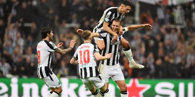 – فاز نادي نيوكاسل يونايتد الإنجليزي على منافسه باريس سان جيرمان الفرنسي بـ4 أهداف لواحد، في مواجهة أقيمت على أرض ملعب الأول، الأربعاء، ضمن منافسات الجولة الثانية في دوري أبطال أوروبا.