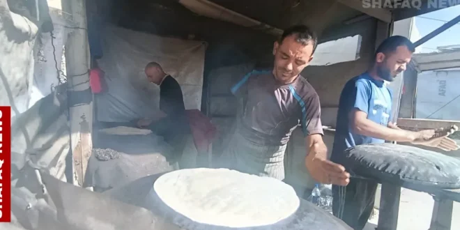 في تنورٍ بسيط داخل خيمة نزوح، تعجن عائلة دحمان الدقيق بما تبقى من قوة في أجسادهم.