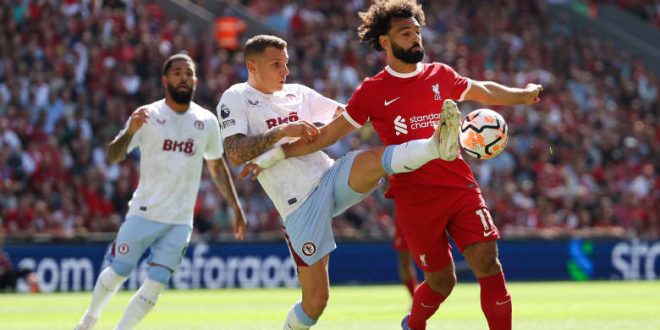 وسجل محمد صلاح، الهدف الثالث لفريقه في شباك أستون فيلا، خلال المباراة التي أُقيمت، الأحد، على ملعب آنفيلد، ليفوز “الريدز” بثلاثة أهداف نظيفة، ضمن منافسات الجولة الرابعة من الدوري الإنجليزي الممتاز.
