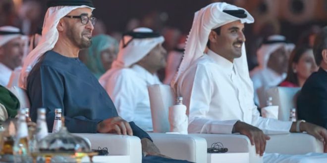 تداول نشطاء على مواقع التواصل الاجتماعي في اليومين الماضيين مقطع فيديو ولقطة لرئيس الإمارات، الشيخ محمد بن زايد مع أمير قطر، الشيخ تميم بن حمد في الدوحة.