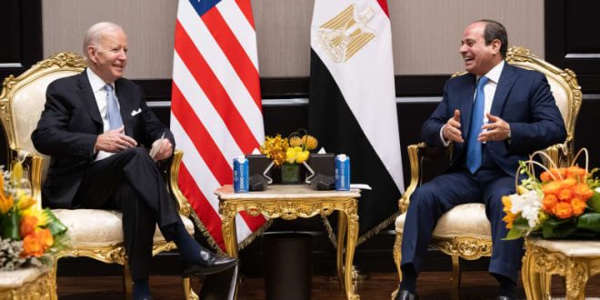 وأطلع بايدن “الرئيس السيسي على الجهود التي تبذلها الولايات المتحدة لضمان عدم قيام الجهات الفاعلة الإقليمية بتوسيع الصراع في غزة، وكذلك على الجهود المستمرة لتأمين إطلاق سراح الرهائن”.