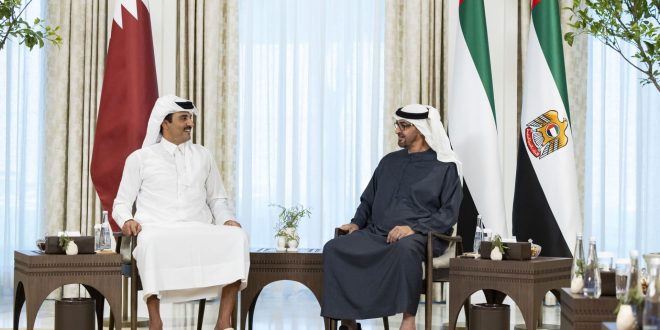 جاء ذلك خلال لقاء الشيخ محمد بن زايد في أبوظبي، مع أمير دولة قطر والوفد المرافق الذي قام بزيارة أخوية إلى الإمارات، بحسب ما أوردت وكالة الأنباء الإماراتية “وام”.