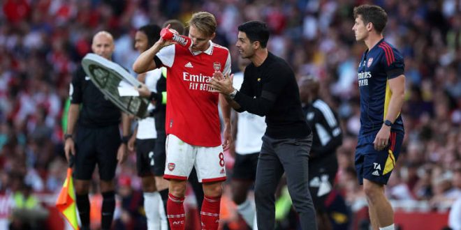 أظهرت لقطات مصورة موقفًا طريفًا بين ميكل أرتيتا، المدير الفني لنادي أرسنال الإنجليزي، واللاعب النرويجي مارتين أوديغارد، خلال تدريبات الفريق، استعداداً للمباريات المقبلة.
