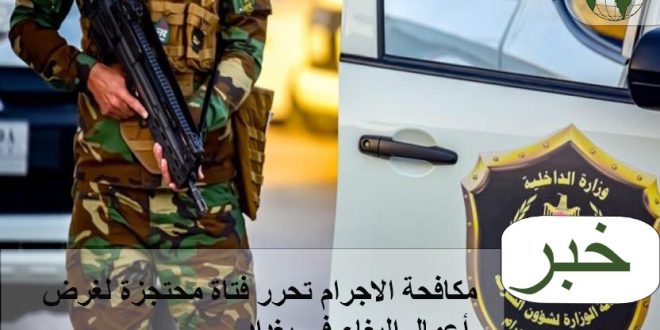اعلنت مديرية مكافحة الإجرام، الاربعاء، تحرير فتاة حدث تم احتجازها من قبل امرأتين ورجل لغرض أعمال البغاء في العاصمة بغداد.