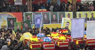 شيّع أهالي مدينة القامشلي شمال شرق سوريا، اليوم الأربعاء، عشرة من مقاتلي ومقاتلات قوات سوريا الديمقراطية “قسد”، قضوا خلال المواجهات الجارية مع قوات الحكومة السورية في مناطق شمال شرق البلاد. وقال سليمان شيخو، احد منظمي التشييع، إن المراسم أقيمت لستة من المقاتلات والمقاتلين، فيما جرى تشييع أربعة آخرين بشكل غيابي. …